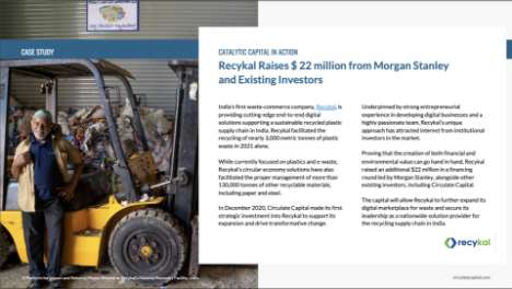 Circulate Capital invested in India’s Recykal in December 2020. Our investment supported the business’ expansion, allowing it to attract larger institutional investors.